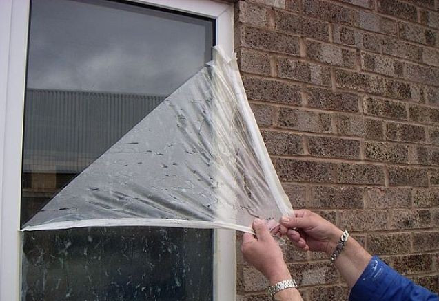 Немногие знают, но пленка для стекол спасает не только от загрязнений, но и от небольших повреждений. Конечно, если пройтись по ней острием ножа, то защищаемая поверхность (например, стекло) покроется хорошей царапиной. Но нарочно такие «эксперименты» вряд ли кто-то будет проводить. А вот вероятность попадания на стекло частиц сухой штукатурки (при черновой отделке помещения), искр от сварочного аппарат (при организации коммуникационных систем) и возникновения других «опасных» ситуаций — высока. К примеру, попавшая на незащищенное окно сухая штукатурка приведет к появлению мельчайших царапин. Если на окно будет нанесена жидкая пленка, то весь «удар» на себя возьмет она. Касается это всех видов мелких повреждений.
